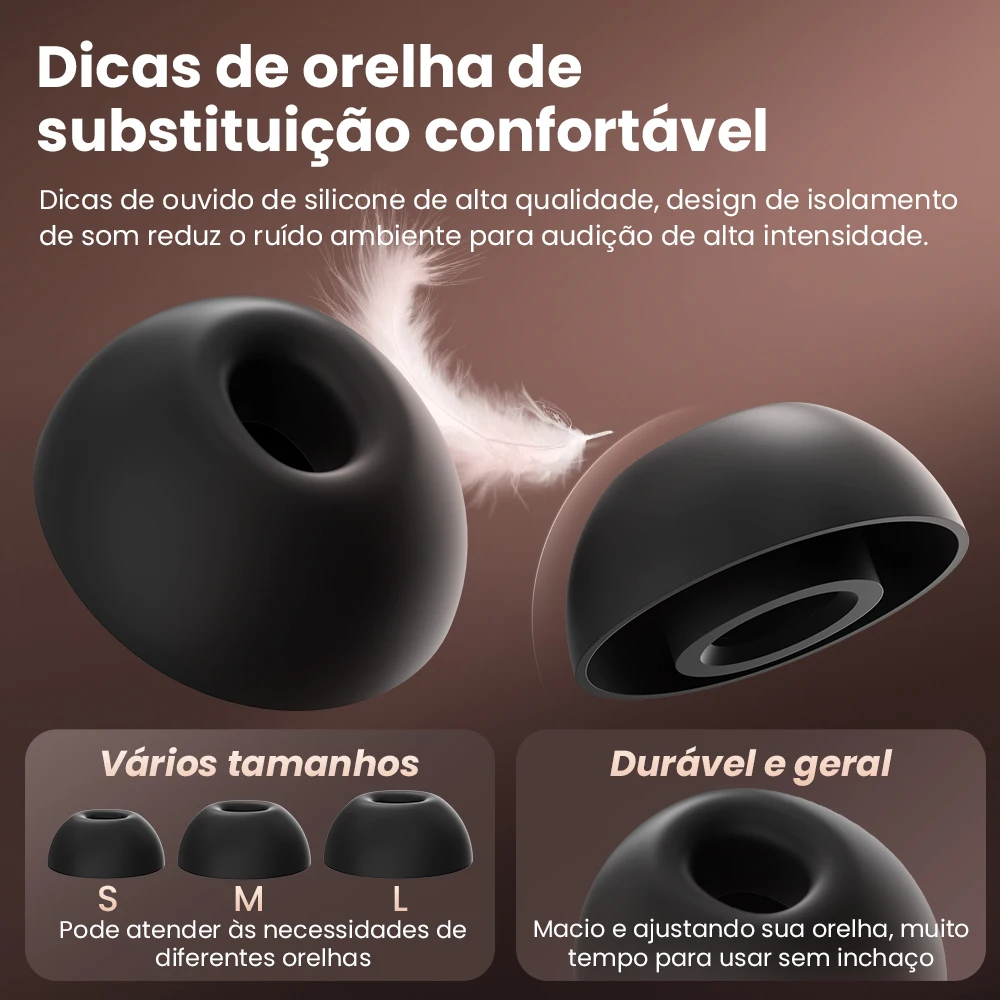 Vários tamanhos: S/M/L, podem atender às necessidades de diferentes ouvidos.